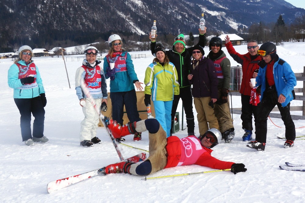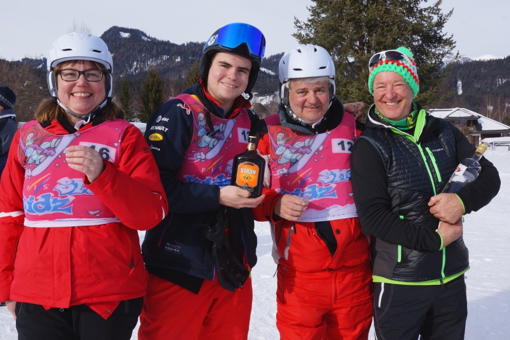 Das Warm-up erfolgte direkt an der Piste mit Trockentraining und Schnaps, gefeiert wurde anschließend auf der Schwarzenbachhütte. Wir sagen DANKE an alle Brunnwirt- und Löffele-Gäste für die Teilnahme! Ganz besonderer Dank gilt der Skischule Flaschberger für die Rennorganisation!